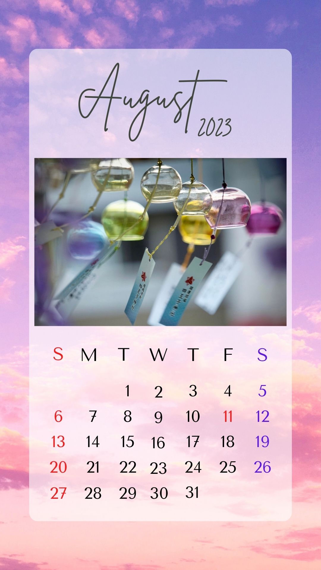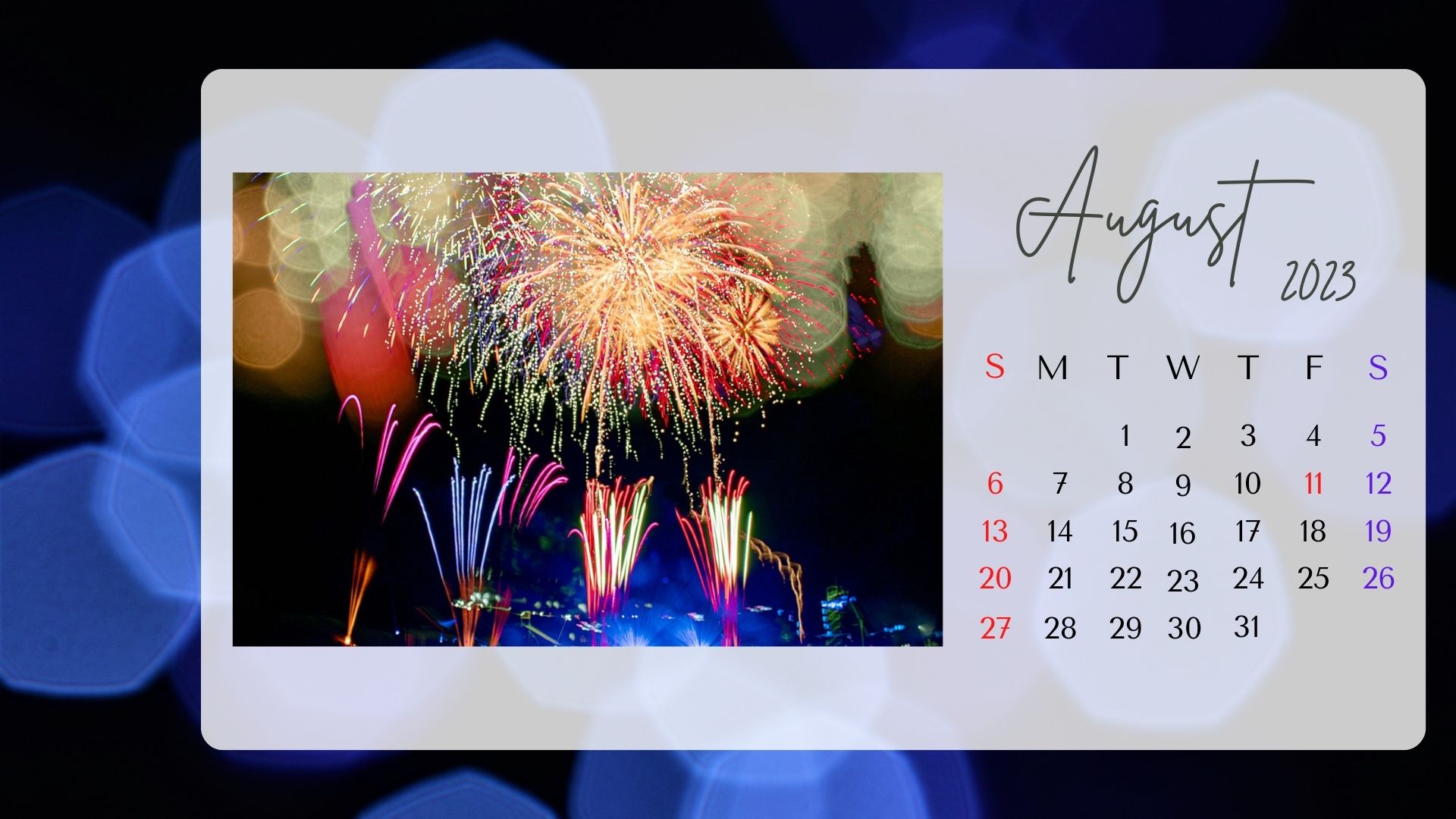 2023年8月カレンダーを作成いたしました。