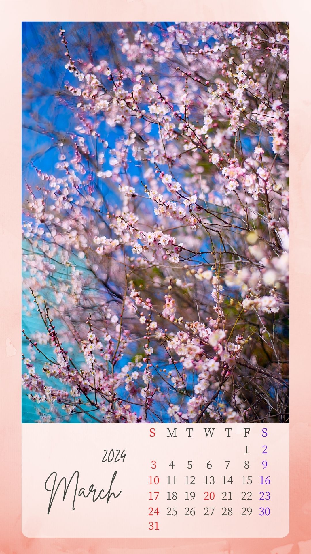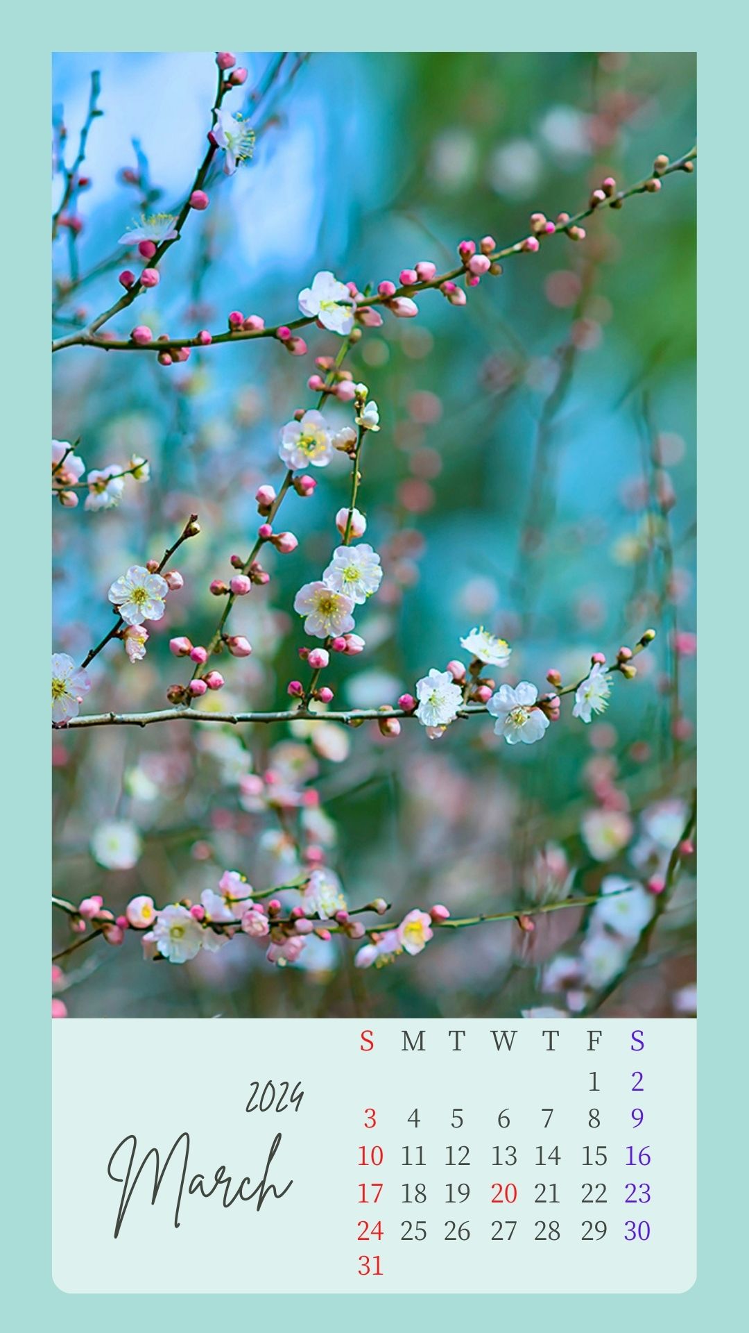 2024年3月カレンダーを作成いたしました。