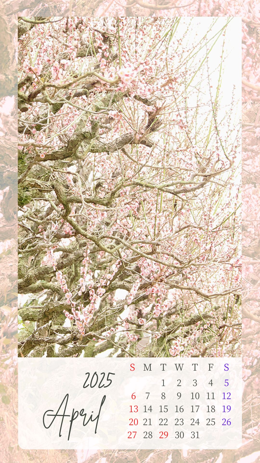 2025年4月カレンダーを作成しました。