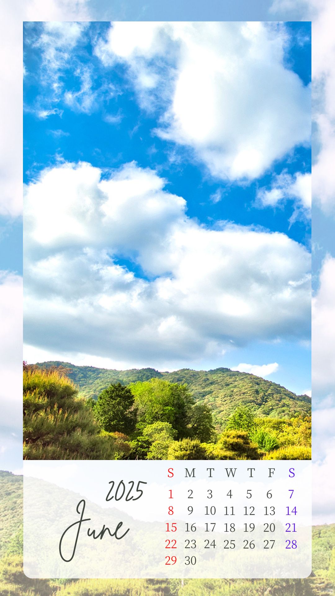 2025年6月カレンダーを作成しました。
