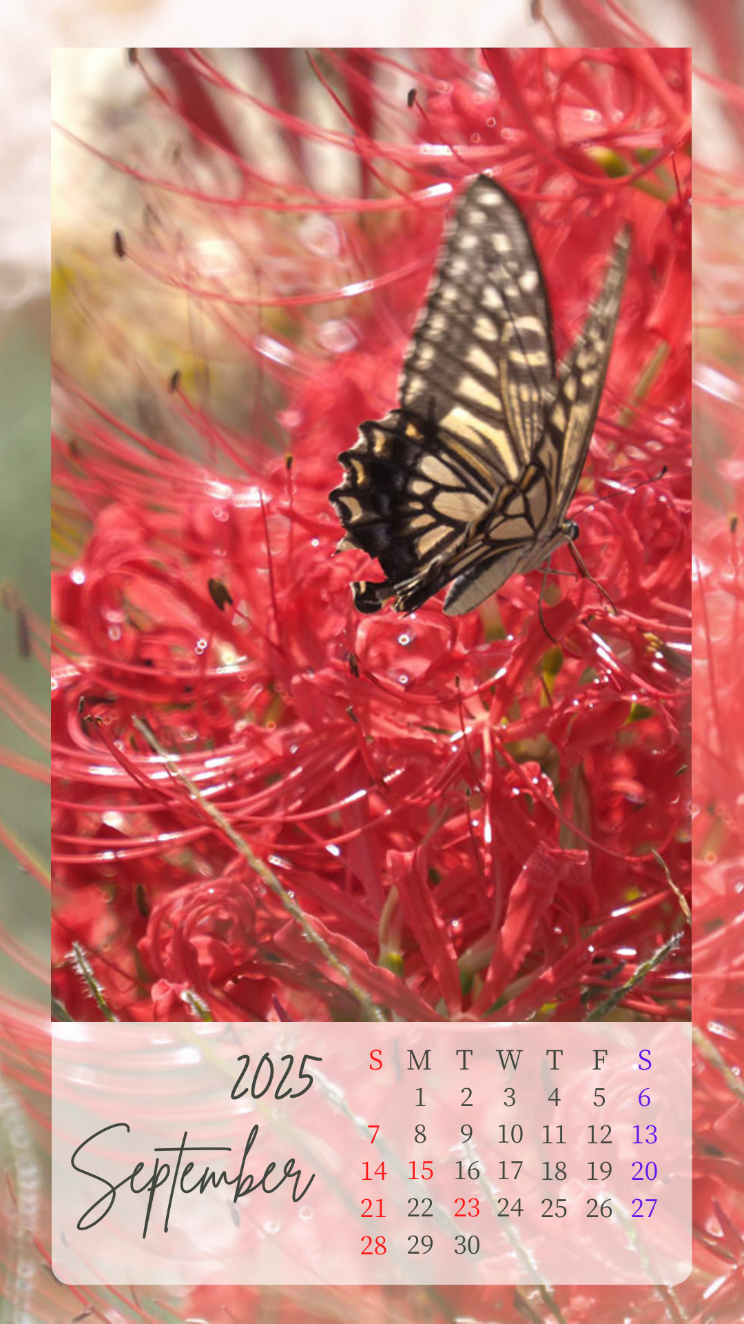 2025年9月カレンダーを作成しました。