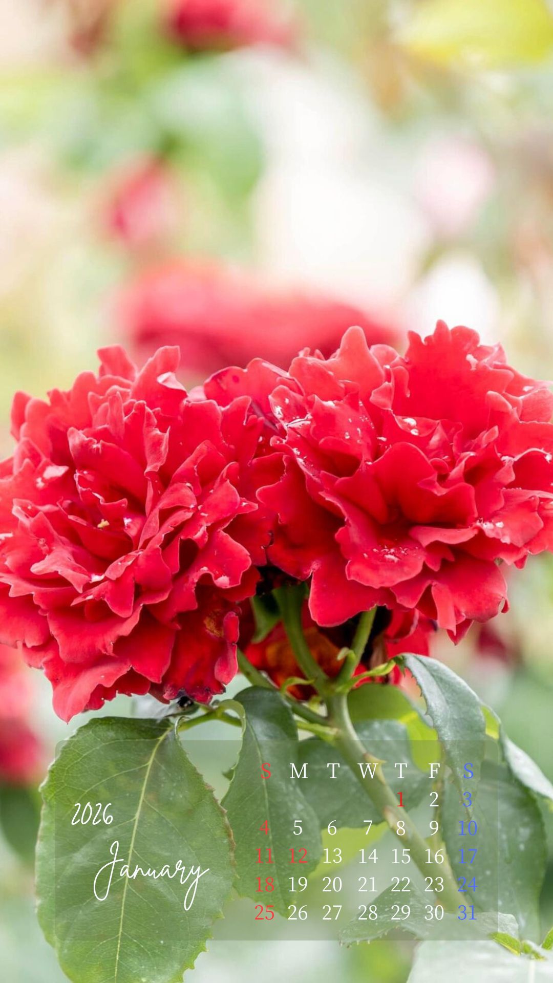 2026年1月カレンダーを作成しました。